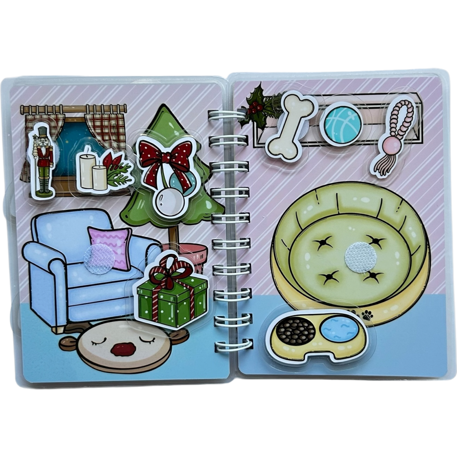 Uvnitř může dítě pejska krmit, koupat, oblékat, ukládat ke spánku, rozmísťovat nábytek a tvořit si vlastní vánoční svět.