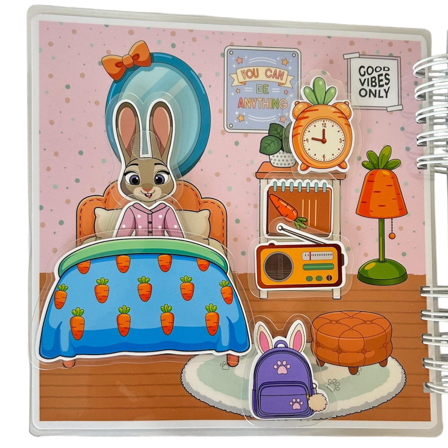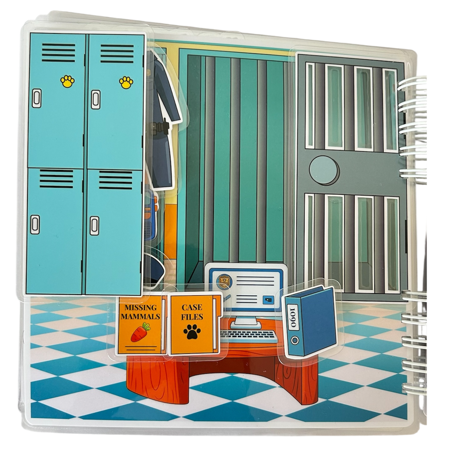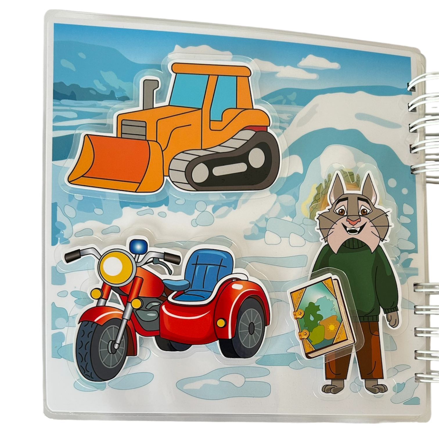 Knížka na suchý zip „ZOOcity“ je interaktivní vzdělávací knížka pro děti, která propojuje hru, učení a objevování. Společně s hlavními hrdiny — lišákem a zajíčkem — se dítě vydává na dobrodružnou cestu jednotlivými stránkami, kde na něj čekají úkoly, příběhové scény a možnost aktivně pracovat s odnímatelnými prvky.