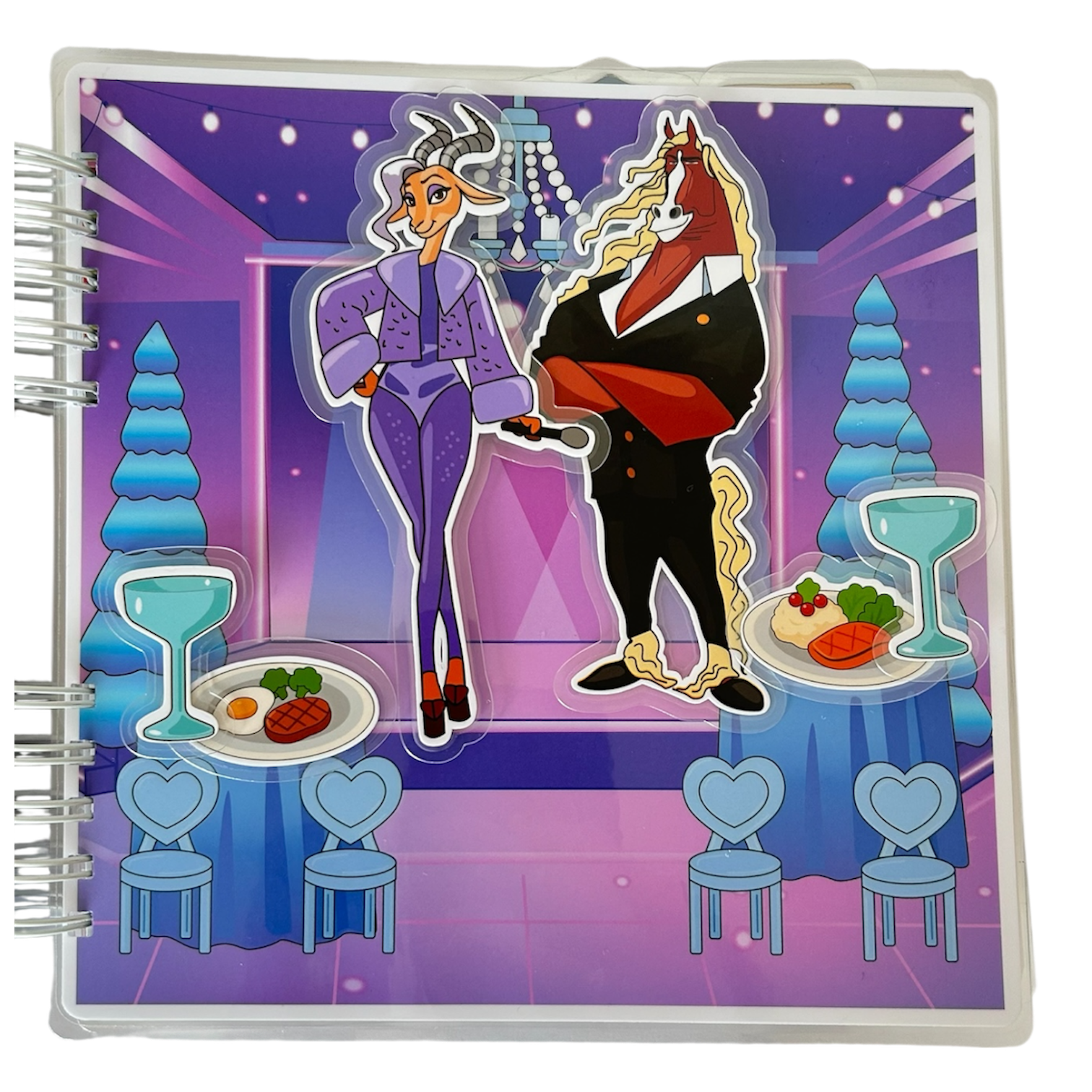 Knížka je dostupná ve dvou velikostech: kompaktní formát 10 × 15 cm vhodný na cesty a větší formát 21 × 21 cm pro pohodlné hraní doma nebo společné aktivity s rodiči. Zákazník si může zvolit samostatnou knížku nebo výhodnou sadu obsahující knihu a tři přívěsky s postavami.