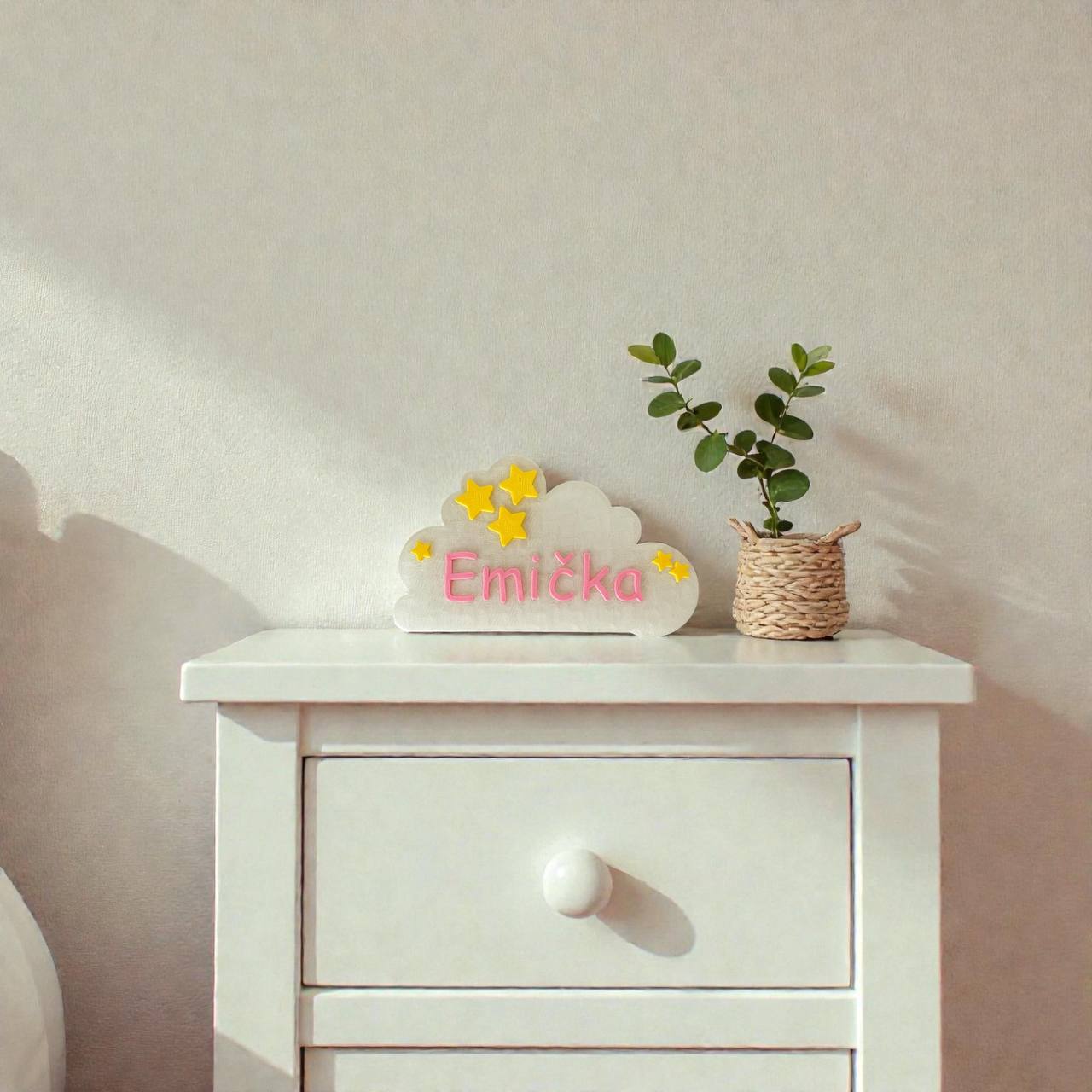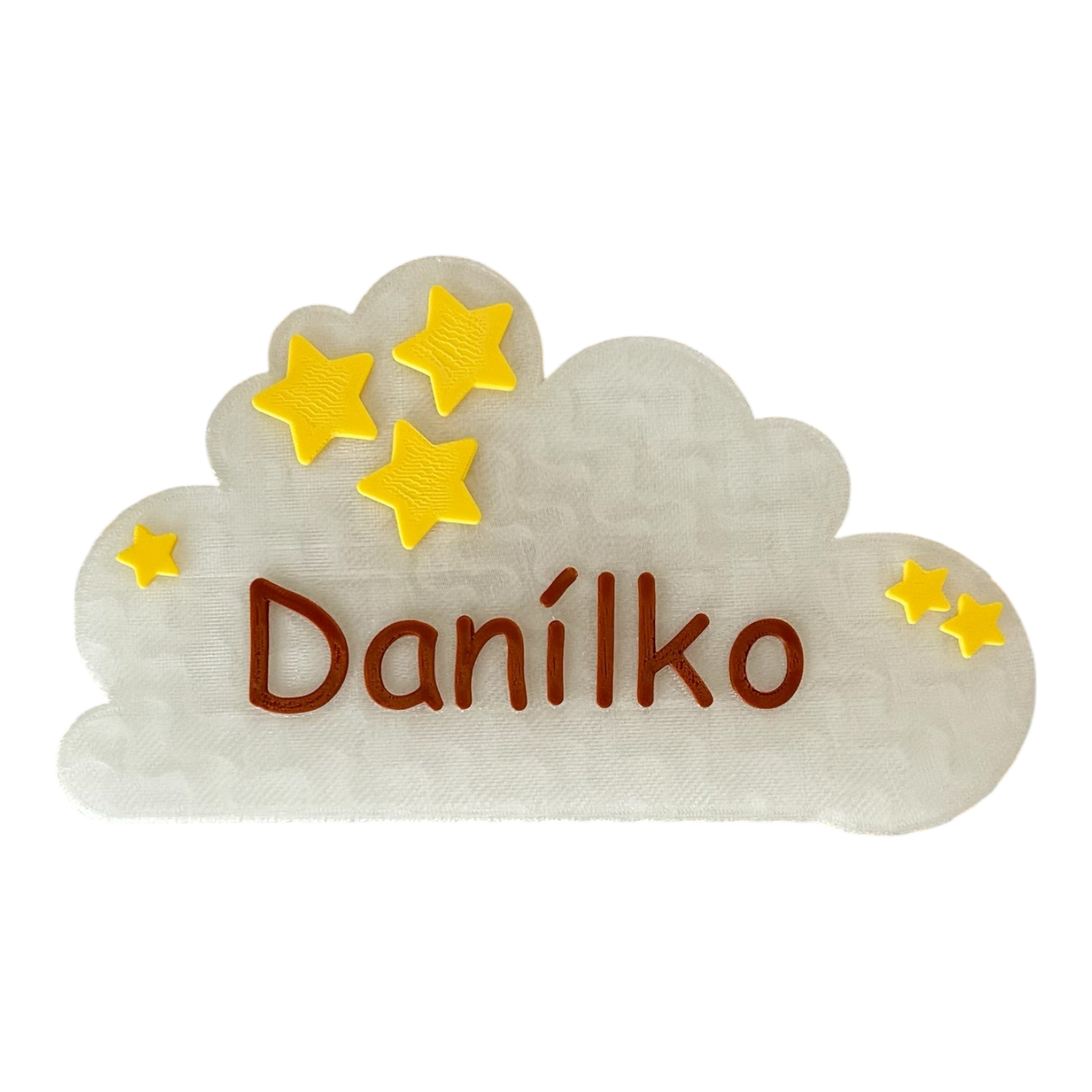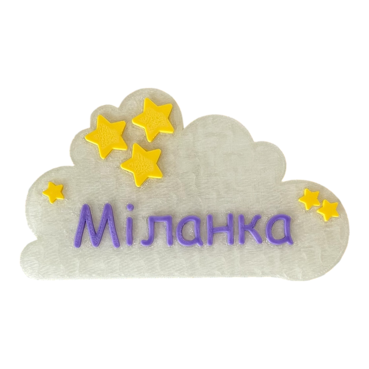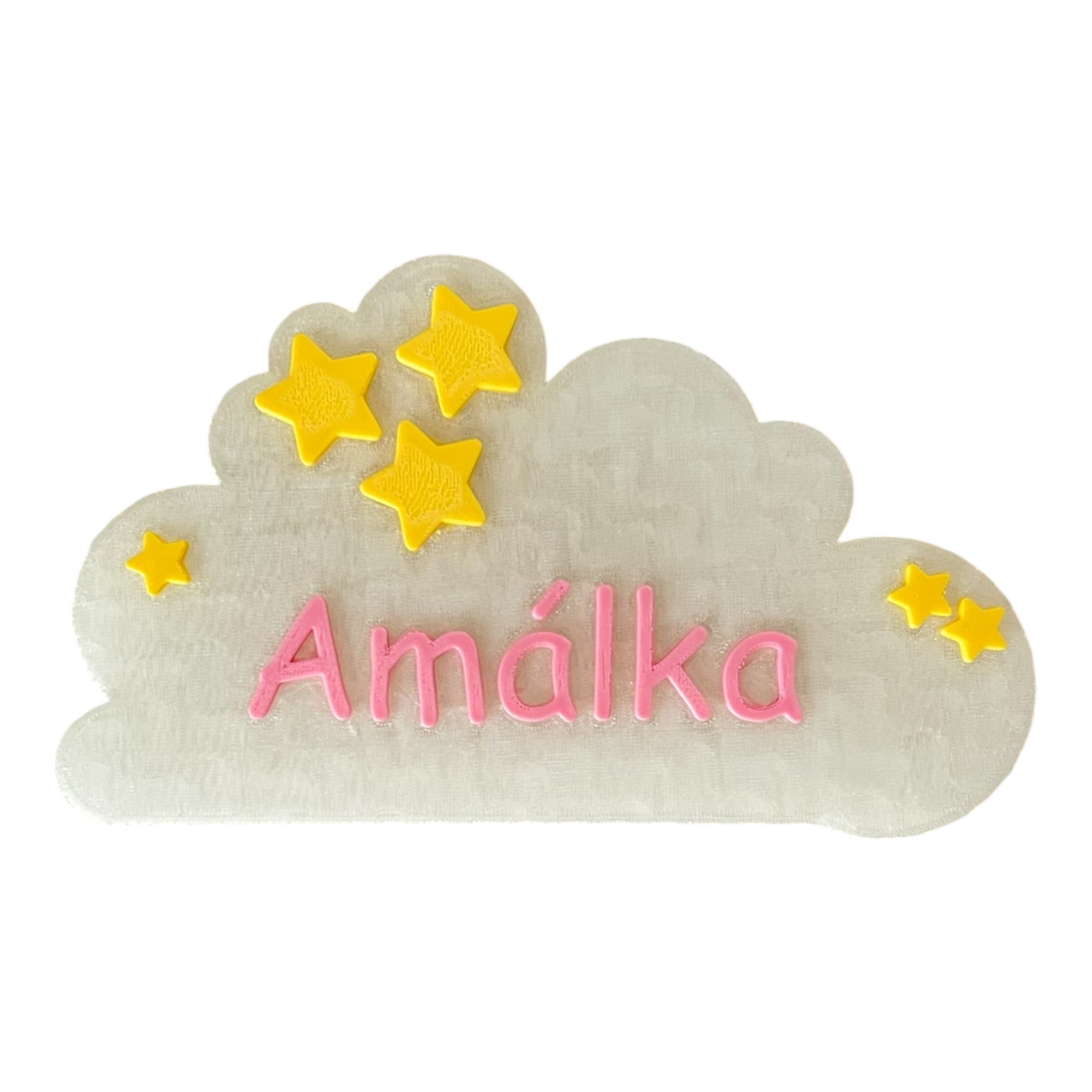 Mráčky jsou vytištěné na 3D tiskárně z PLA plastu. Jedná se o moderní bioplast rostlinného původu, který se nejčastěji vyrábí z kukuřice nebo cukrové třtiny. Materiál neobsahuje toxické příměsi, nemá výrazný zápach, je bezpečný pro děti a vhodný do dětských pokojů. Je příjemný na dotek, lehký a zároveň dostatečně pevný pro každodenní používání.