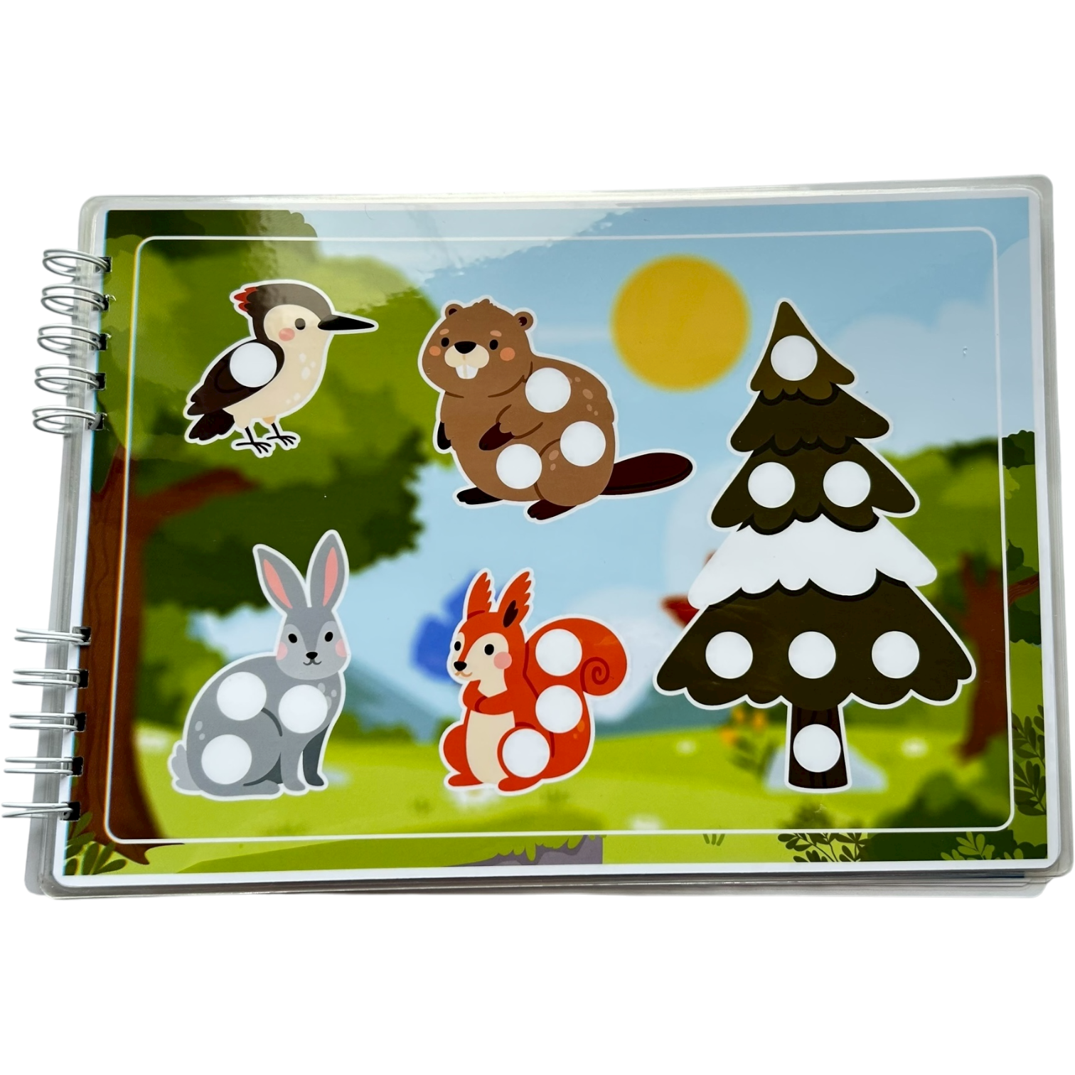 Na každé straně dítě najde jednoduchý úkol: vytvořit malé kuličky z plastelíny ve správné barvě a přilepit je na označená místa na obrázku.
