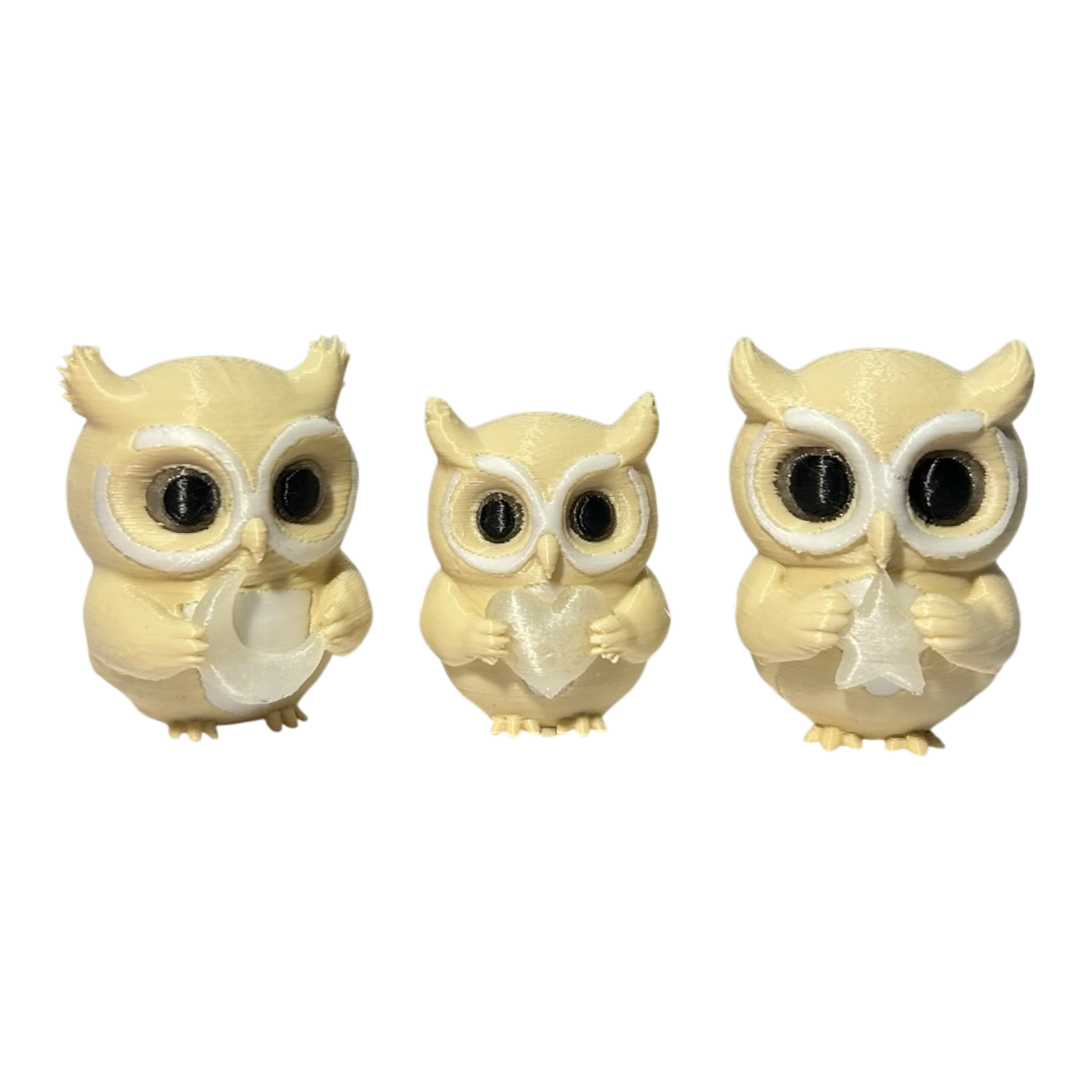 Hlavními hrdiny jsou maminka, tatínek a sovátko. Dítě si o jejich příběhu může nejen číst, ale také si s postavičkami hrát díky třem figurkám vytištěným na 3D tiskárně.