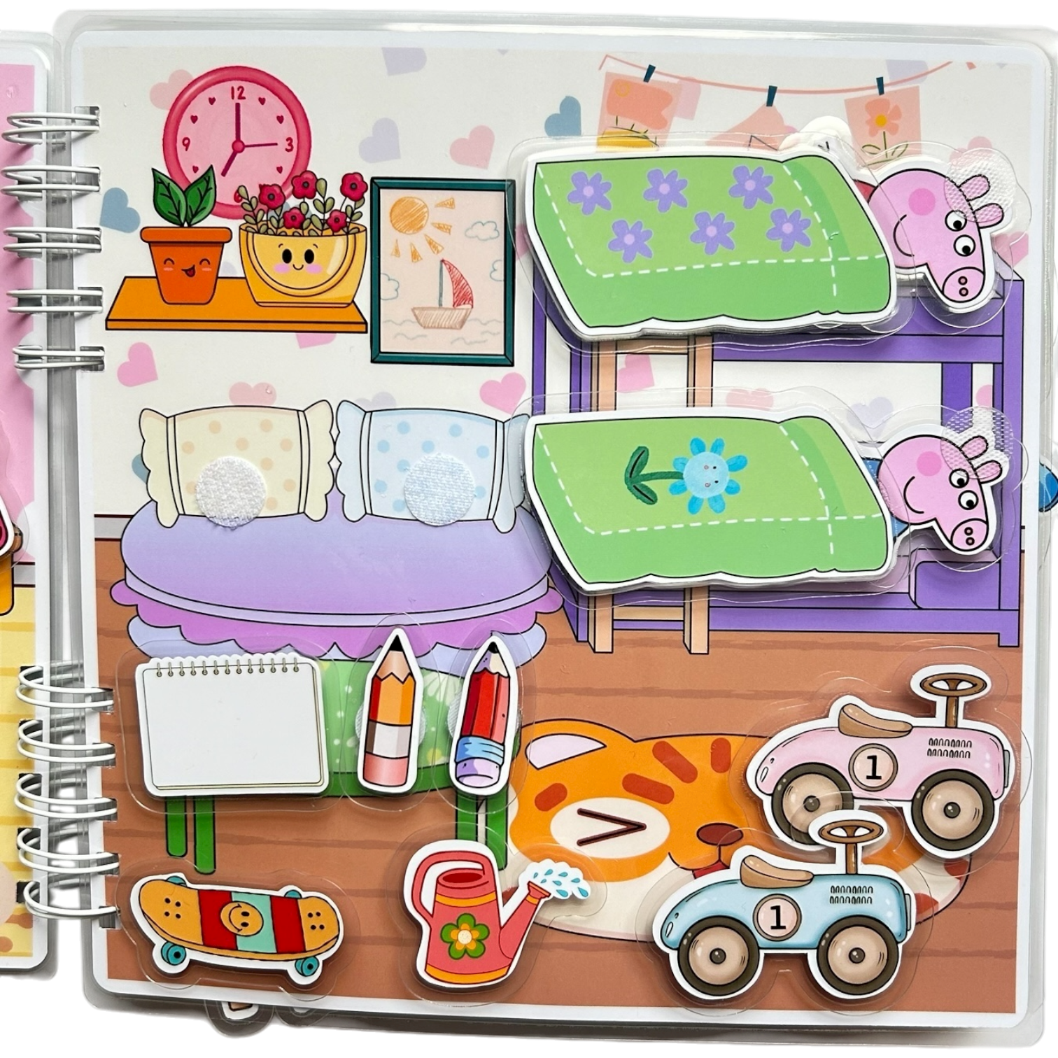"Prasátko a kamarádi" je interaktivní kniha na suchý zip, která spojuje hru a učení.
