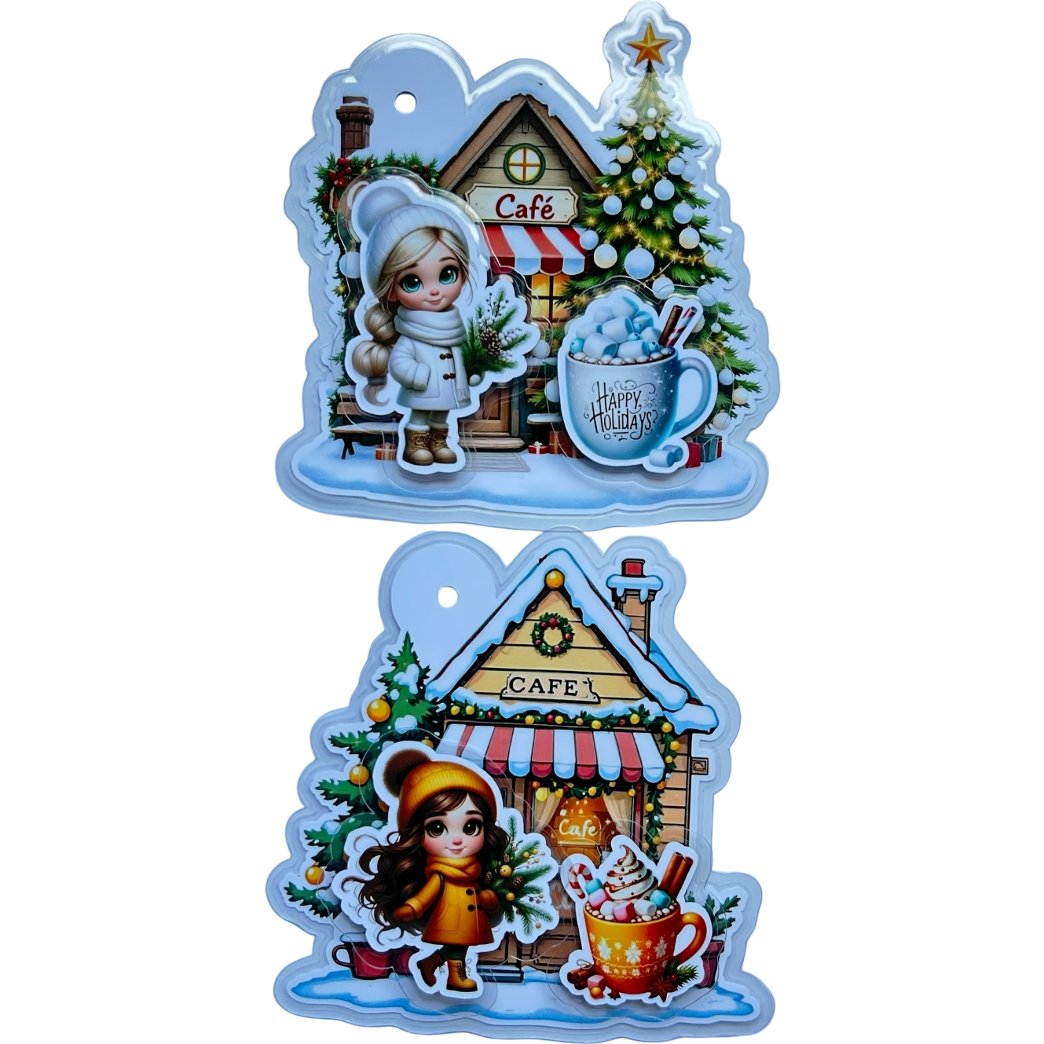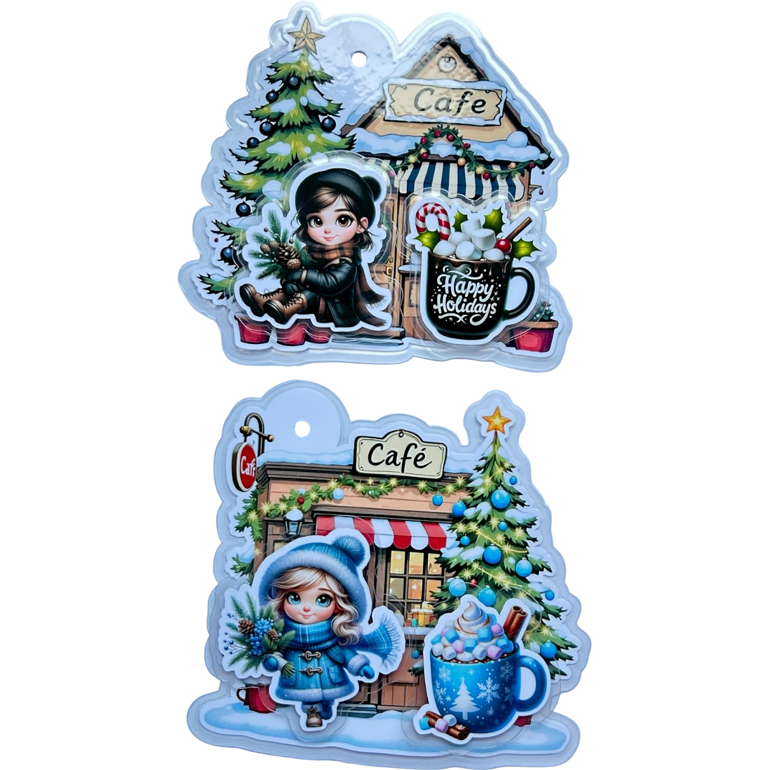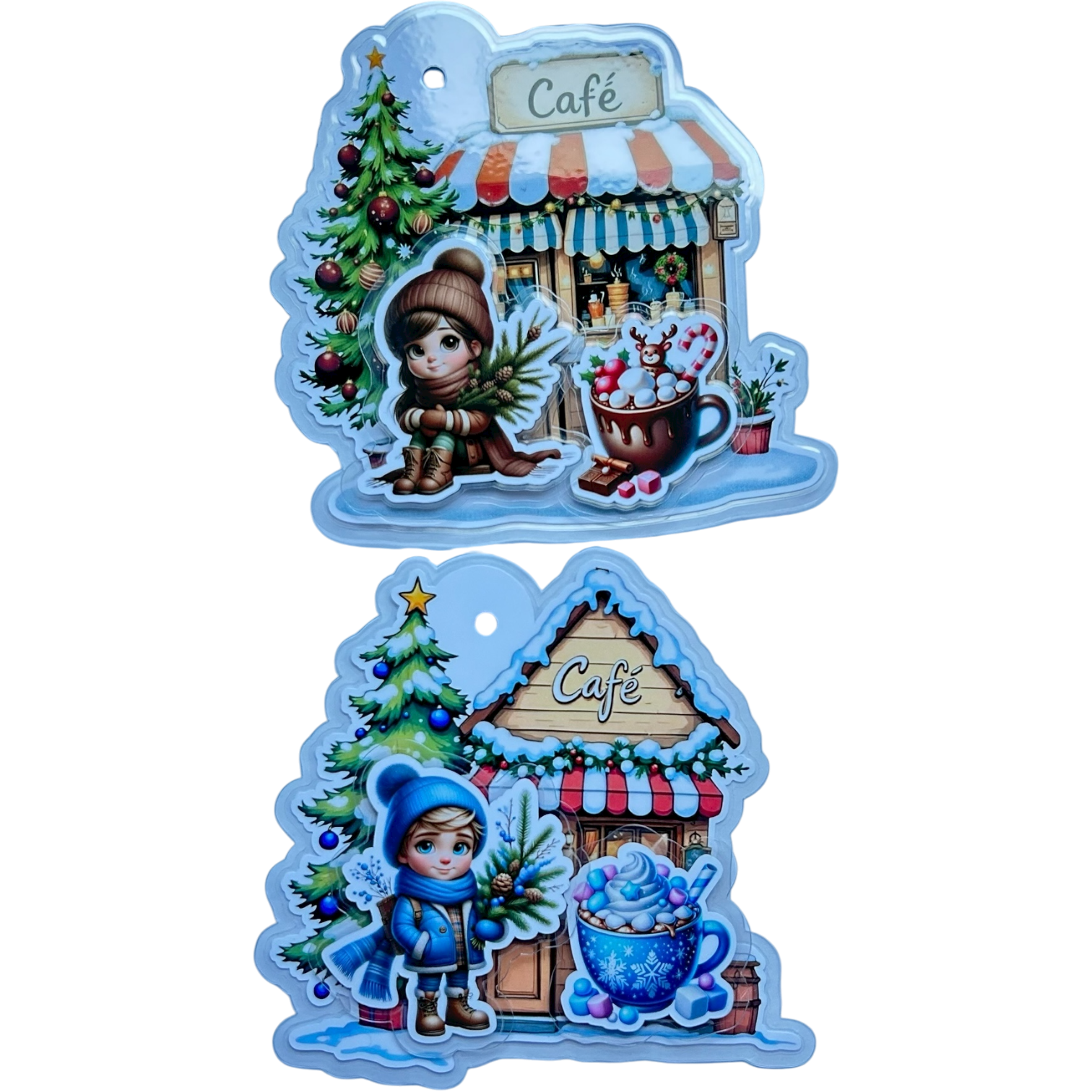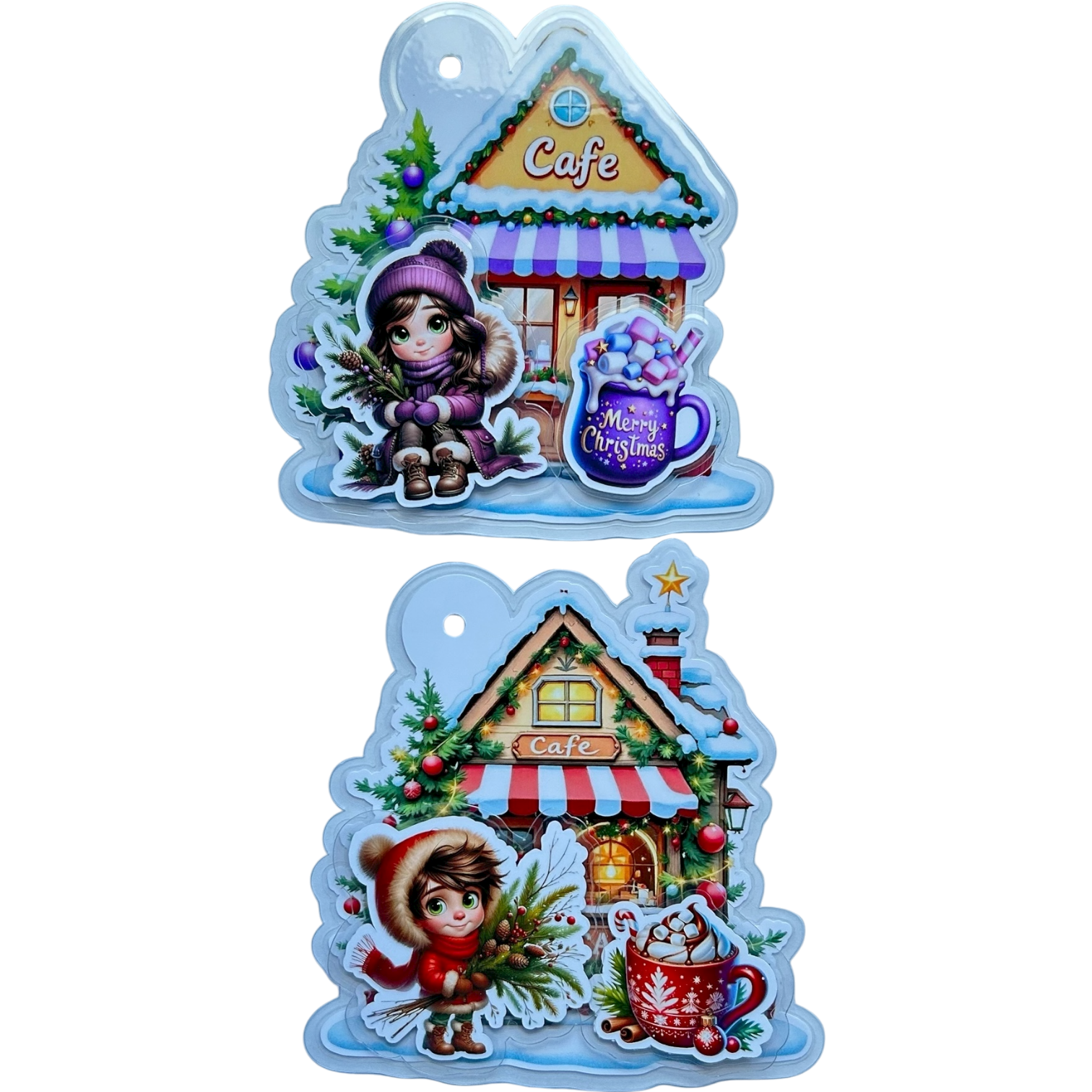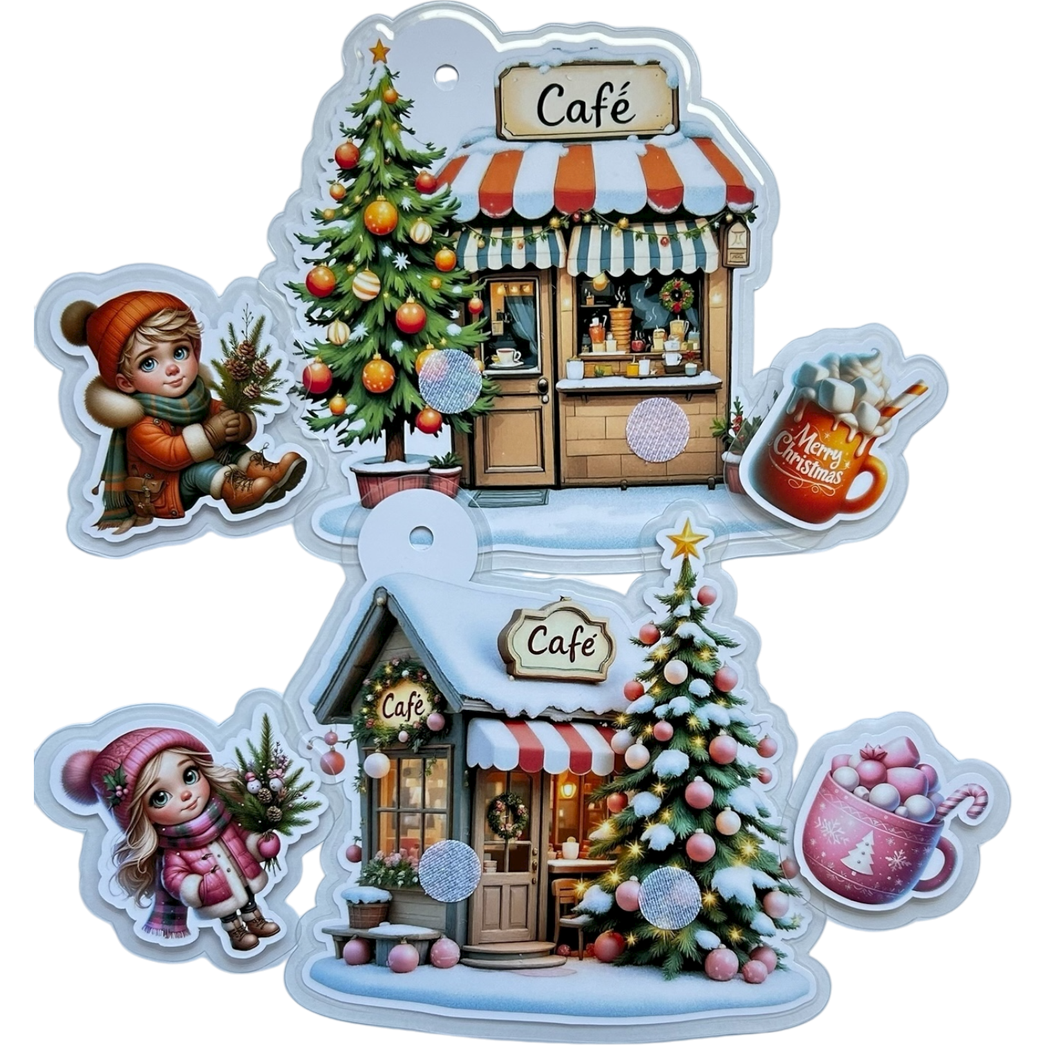 Obsahuje 10 karet s kavárnou. U každé kavárny visí vánoční dekorace s barevnými koulemi. Úkolem dítěte je podle barvy ozdob přiřadit dětem správné oblečení a hrnečky stejné barvy.