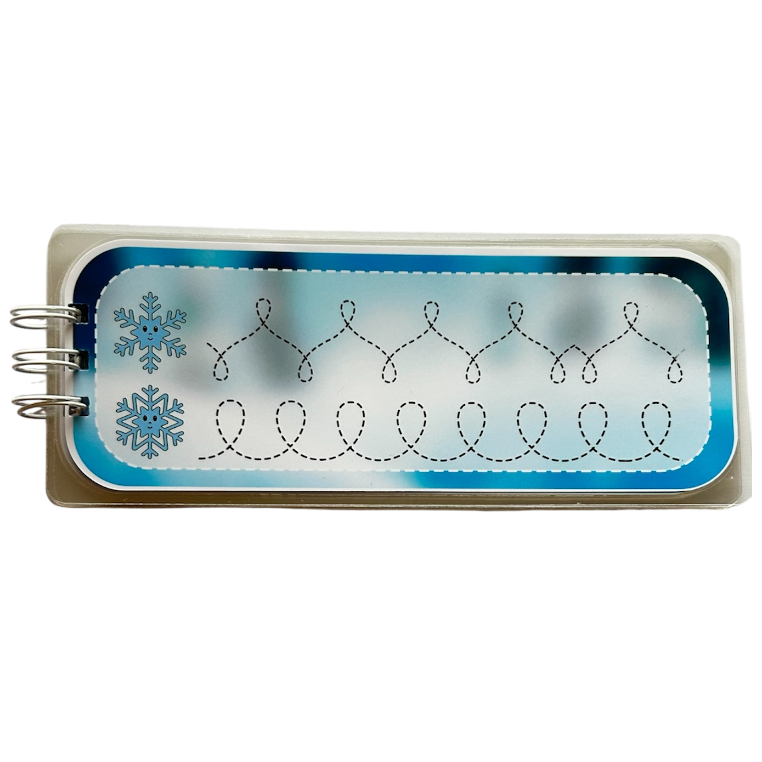 “Zimní písanka” jsou zimní pracovní listy určené pro děti od 4 let. Všechny stránky jsou laminované, takže dítě může opakovaně psát a mazat bez poškození. Součástí balení je fix piš–smaž.