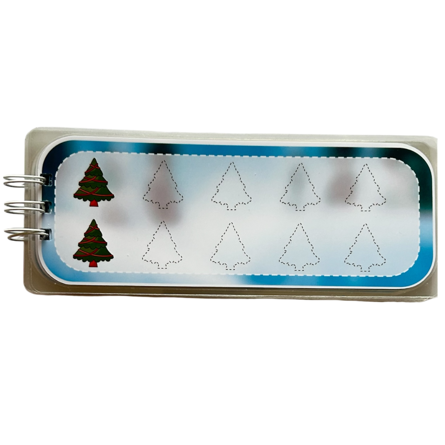 Zimní ilustrace vytvářejí příjemnou atmosféru a motivují dítě k pravidelnému procvičování.